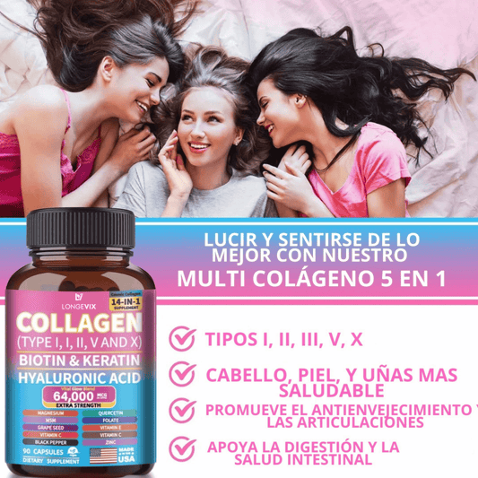 Colágeno Longevix-Colágeno 14 en 1- Cabello Fuerte y Uñas Perfectas en 1 Semana